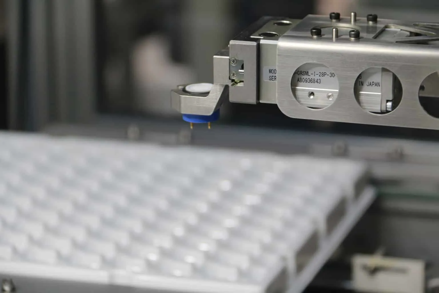 PTC自主设计开发的高精度自动化系统,具有高精度6轴工业机械臂、PLC控制的上下料单元、集成兼容的人机界面,并利用视觉分析技术进行自动传感器测试。